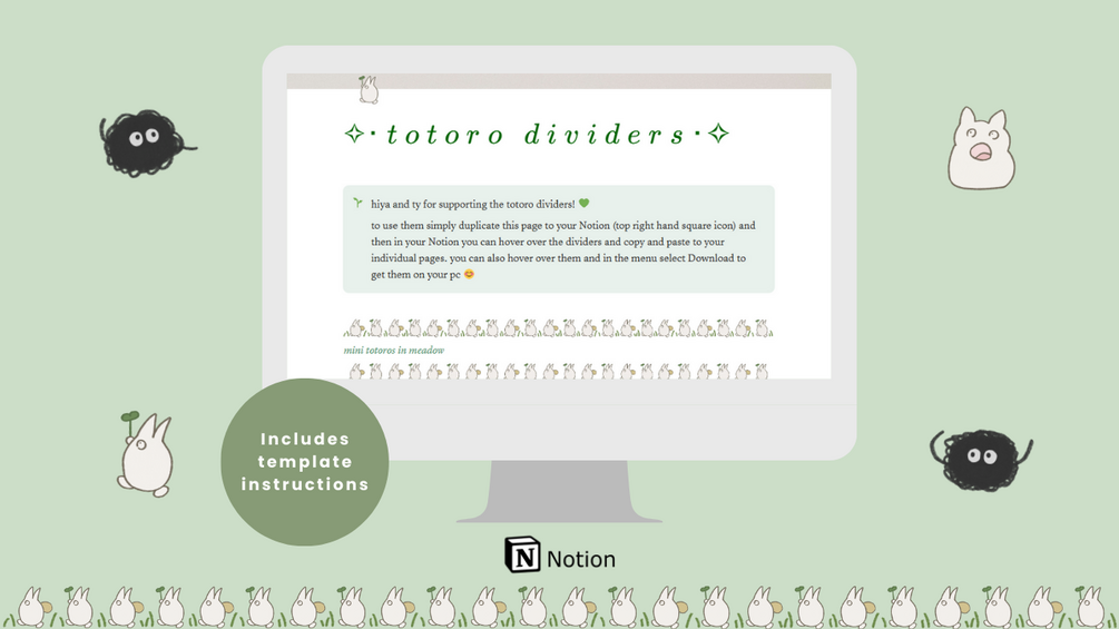 Once you download the product on Gumroad you'll see a link to the Notion template, simply duplicate this page to your Notion (top right hand square icon) and then in your Notion you can hover over the dividers and copy and paste to your individual pages. you can also hover over them and select Download to get them on your pc π
